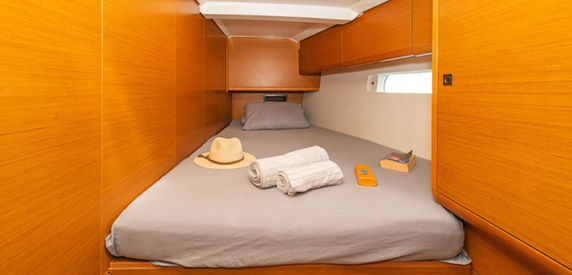 Step outside to discover the cockpit table perfect for alfresco dining, a comfortable stern seating area, and a swimming ladder for refreshing dips in the sea. With ample deck space for sunbathing and a bimini for shade, you have all you need for a perfect experience on the water.